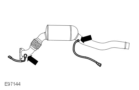 - Install the exhaust system. For additional information, refer to: Exhaust System - Vehicles With: Diesel Particulate Filter (DPF) (309-00D Exhaust System - TDV8 3.6L Diesel, Removal and Installation).