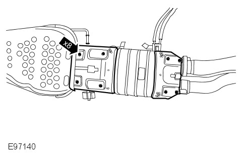 Secure the LH catalytic converter to DPF retaining clamp.
