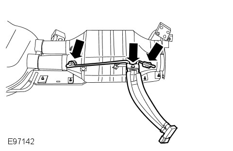 - Remove the transmission crossmember. For additional information, refer to: Transmission Support Crossmember (502-02 Full Frame and Body Mounting, Removal and Installation).