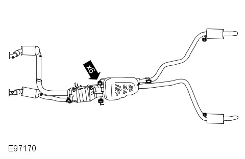 RH catalytic converter shown removed for clarity.