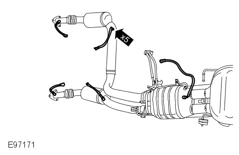 Disconnect the LH pre-catalytic converter exhaust gas temperature sensor electrical connector.
