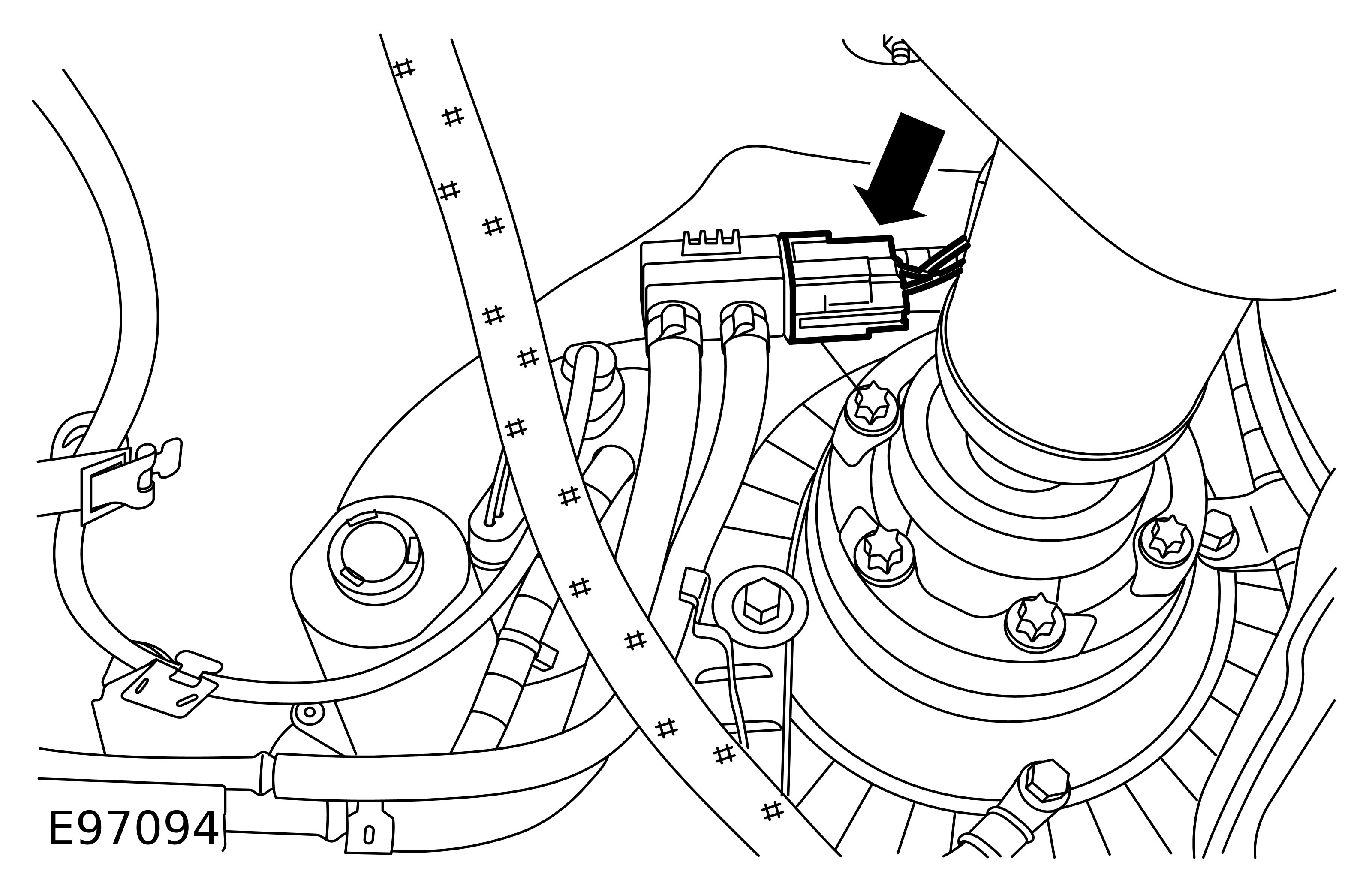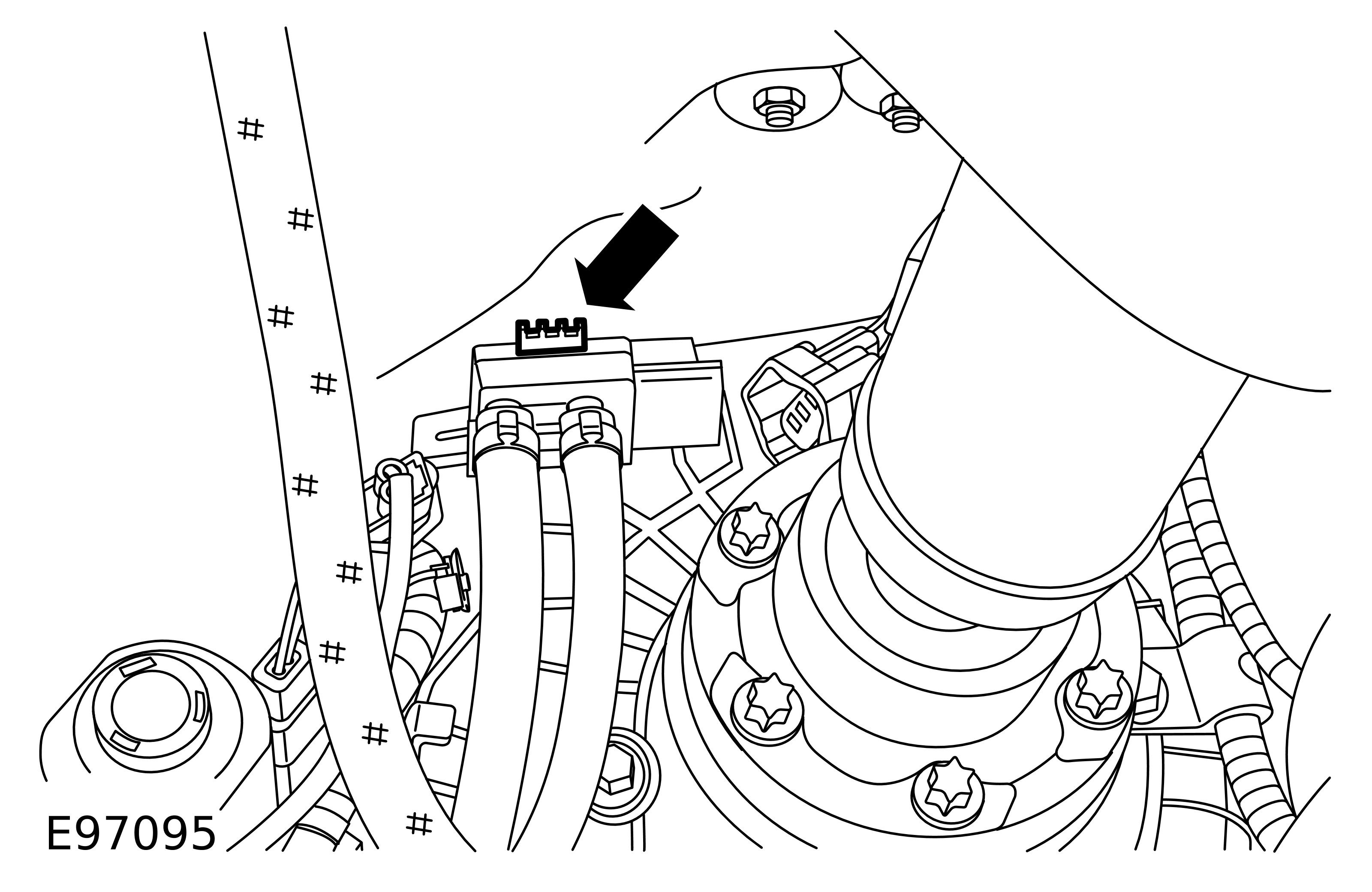 - Tighten the clamps to 48 Nm (35 lb.ft).