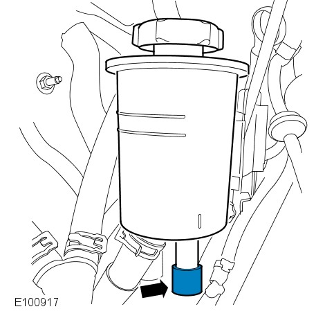 Do not allow the power steering fluid level in the power steering fluid reservoir to fall below the minimum power steering fluid level. Failure to follow this instruction may result in damage to the power steering system.