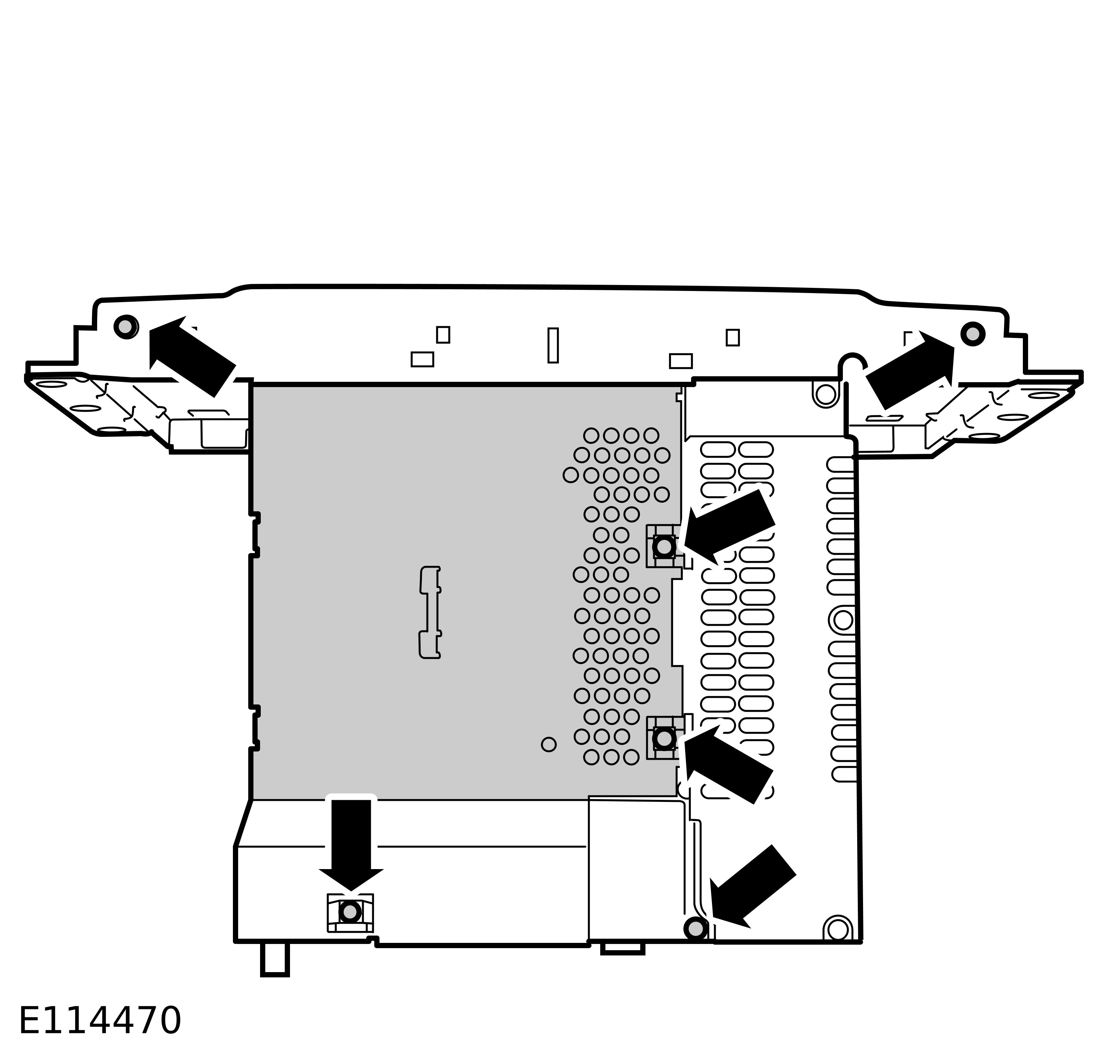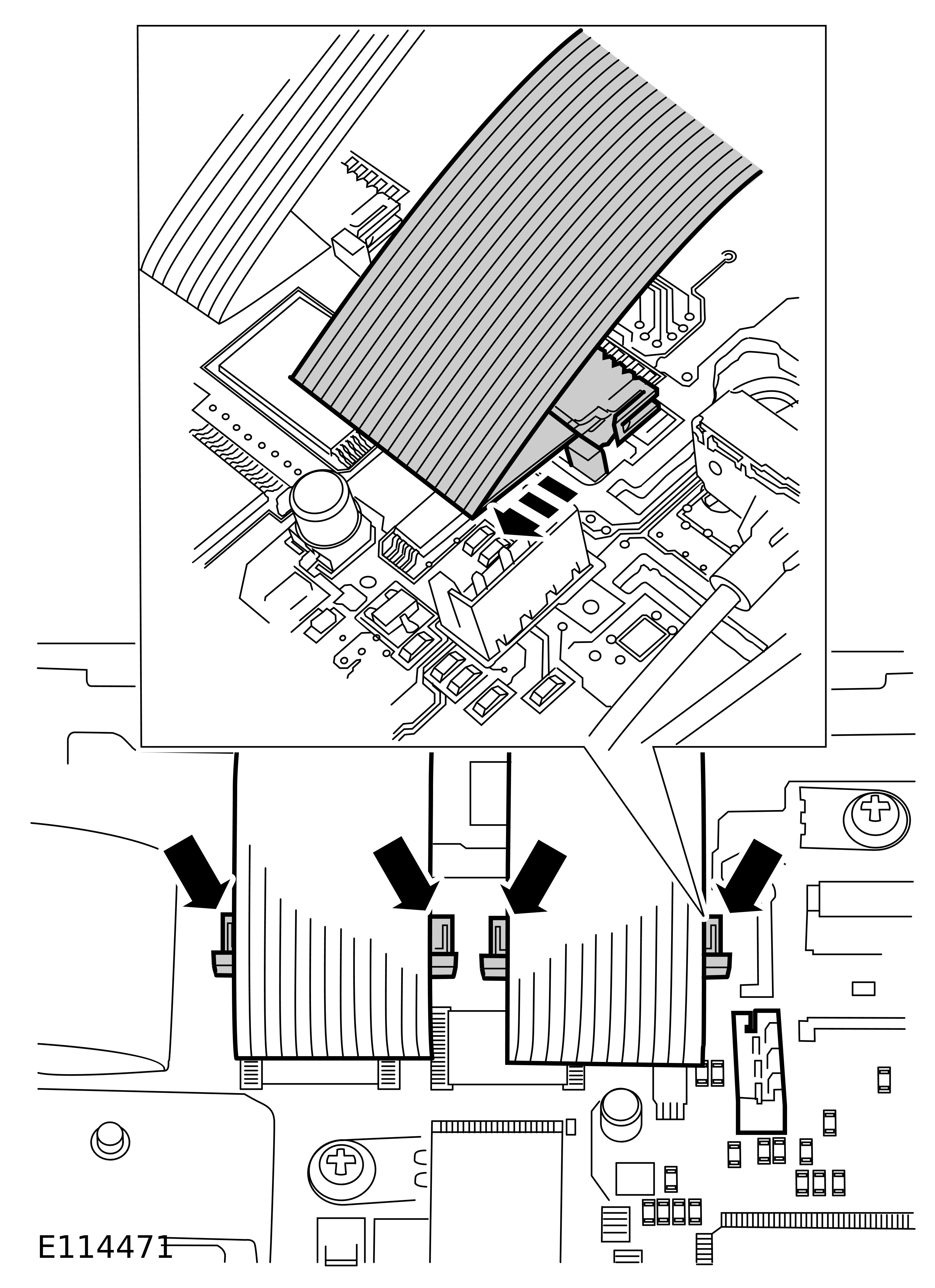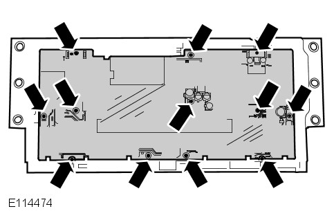 - Remove the audio unit (integrated head unit) assembly. For additional information, refer to: Audio Unit (415-01 Audio Unit, Removal and Installation).