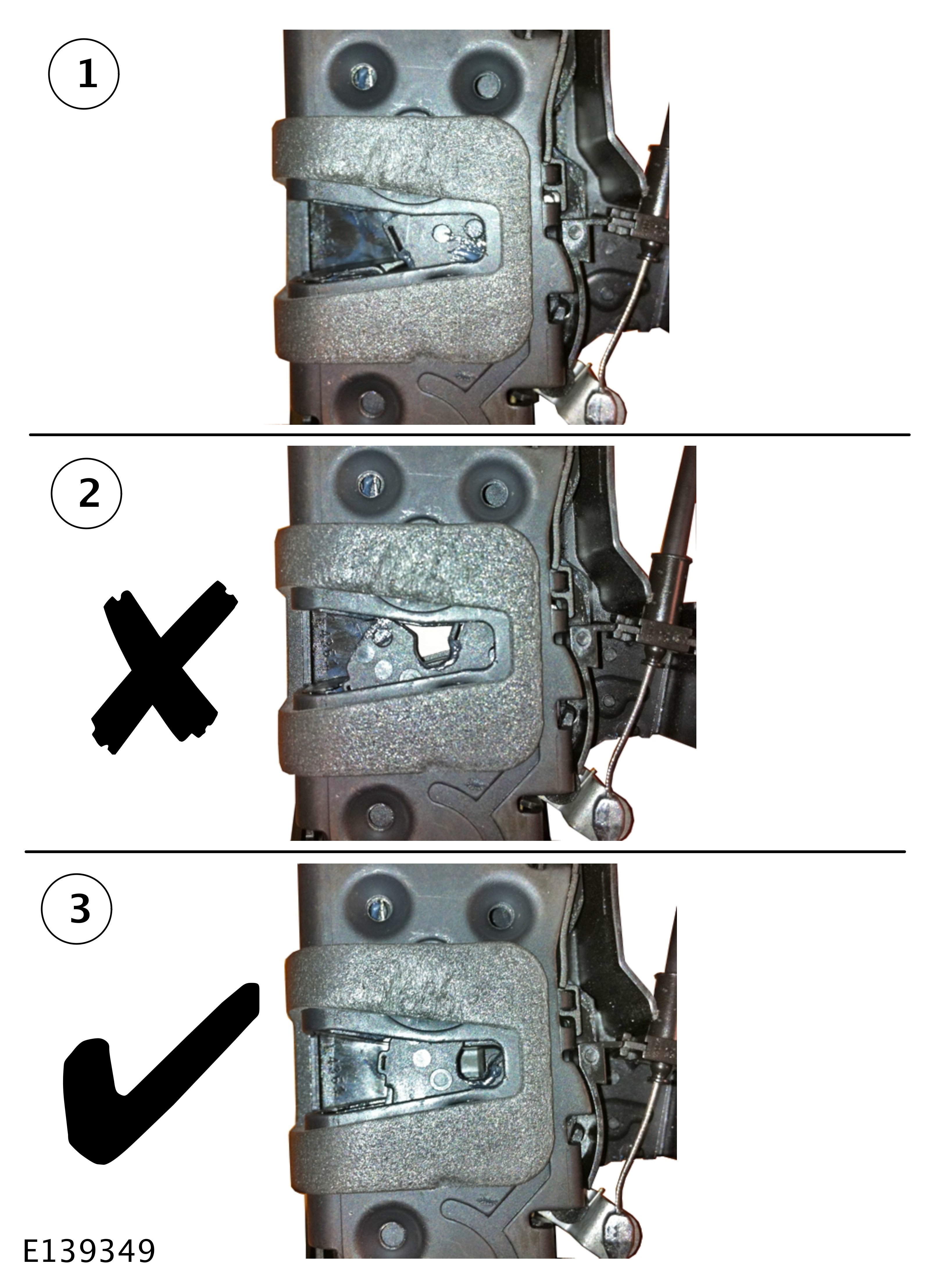 Confirm that the latch interior release lever is in the unlocked position as shown