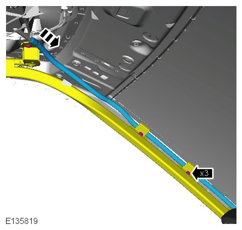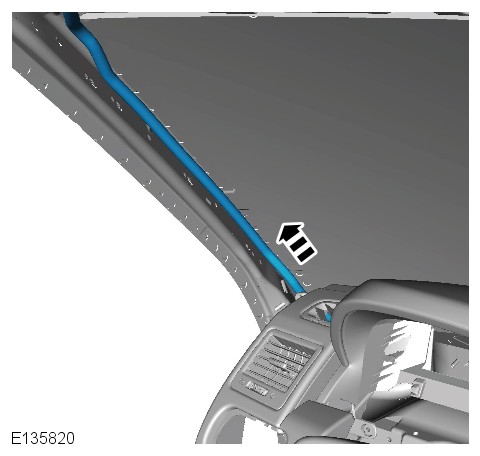 Using suitable tape, secure the drain hose to a suitable rod to aid removal from the A-pillar area.