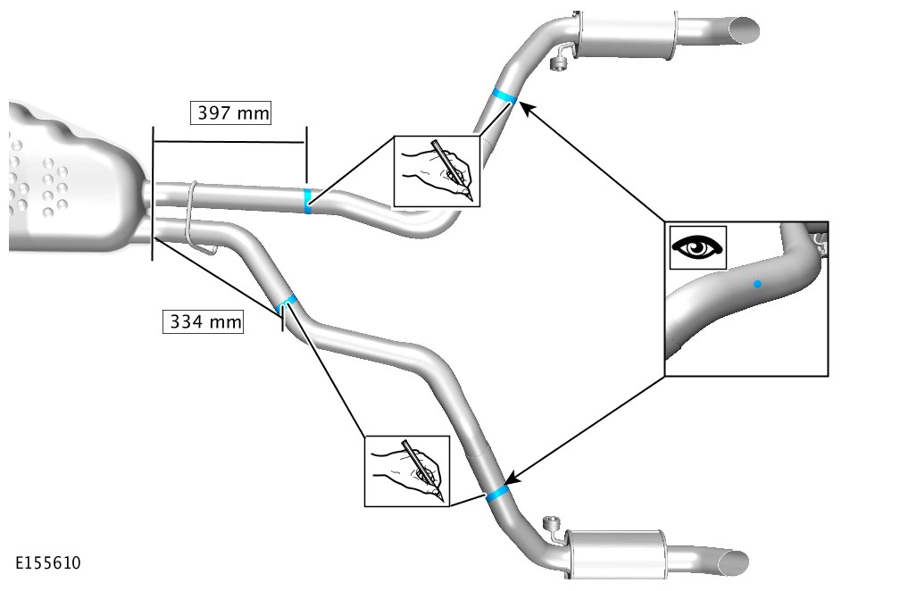 After the exhaust has been tightened, measure the clearance between exhaust and the chassis. If the measurement is not correct, loosen the exhaust retaining clamp and position the exhaust until the clearance is achieved.