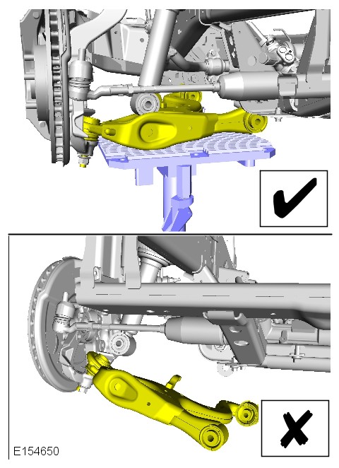 Make sure the lower arm is supported. Failure to follow this instruction may result in damage to the ball joint.