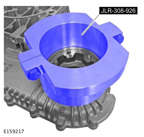 The transfer case must be supported by the special tool on a flat surface during this step.