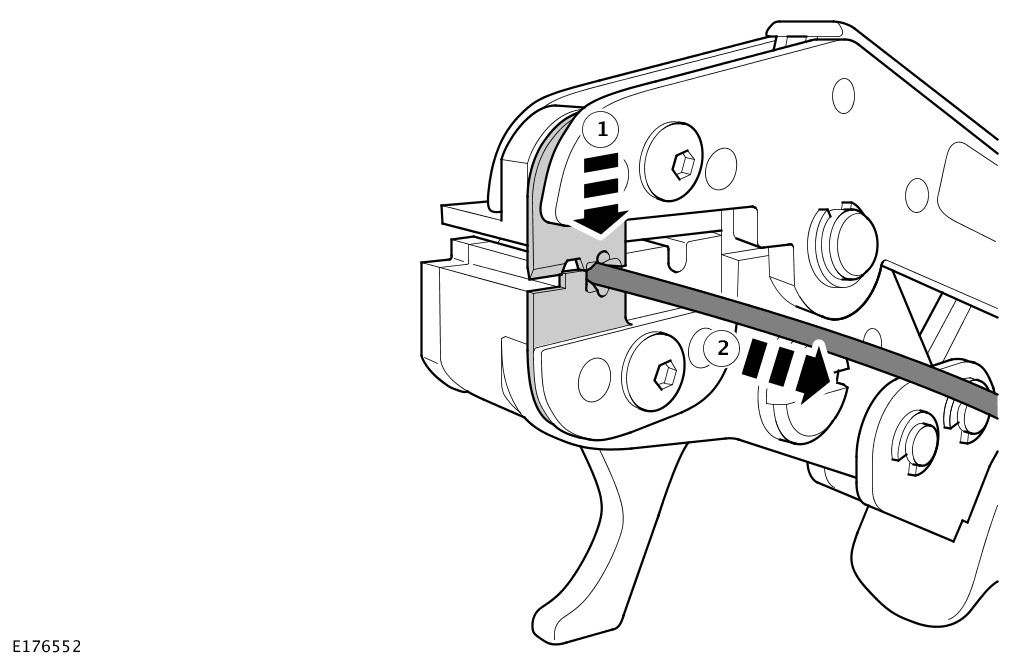 By pressing the outer edges of the wiring harness cable length stop together the adjuster can be slid up or down the jaw. This decreases or increases the length by which the cable insulation will be stripped from the pre-terminated lead or wiring harness cable.