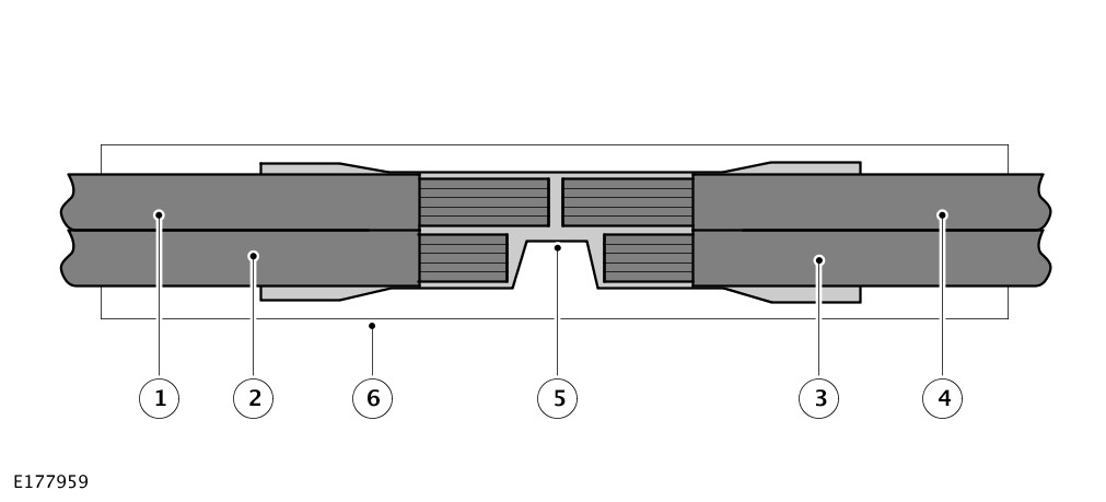 For each splice repair to a wire smaller than 0.35 mm² (0.00054 inch²), an additional piece of wire (0.35 mm² (0.00054 inch²) or 0.5 mm² (0.00078 inch²)) must be used. The additional piece of wire must be inserted into the splice connector with the wire being repaired. to make the joint secure when crimped. When the wires have been crimped into the splice connector, all additional wire(s) must be cut close to the splice connector. This is to make sure the additional wire is fully covered when the glue lined heat shrink sleeve is in position over the splice connector.