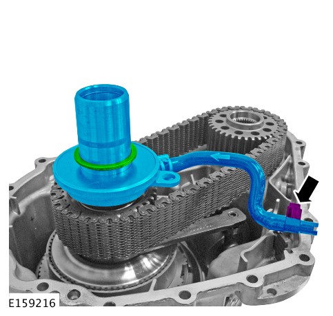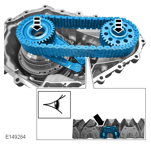 Make sure that the transfer case chain is installed with the transfer case chain link facing down.