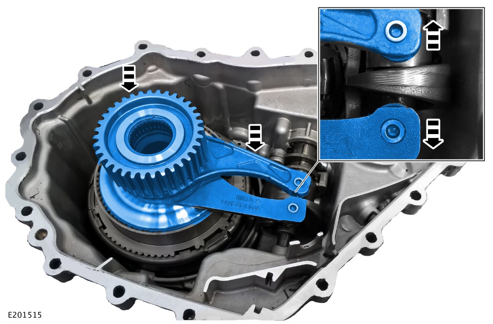 The input shaft and transfer case oil pump assembly must be supported and held in place by hand, until it is located securely into the transfer case clutch assembly.