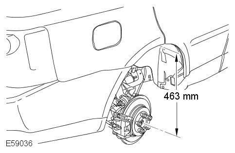 Set the height, between the center of the halfshaft end and the edge of the fender trim, to 463 mm (18.23''). Support with an axle stand.