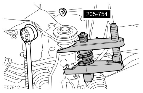 Remove and discard the retaining nut. Using the special tool, release the upper arm ball joint.