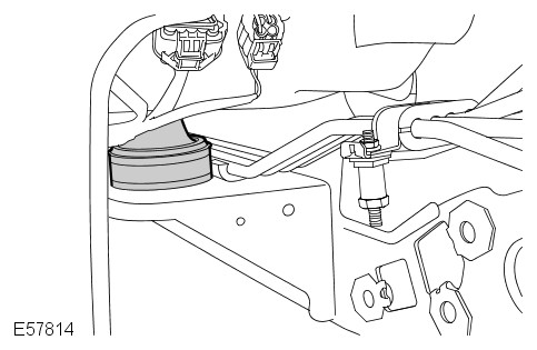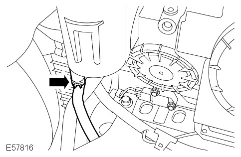 - Connect the fluid line to the reservoir. Reposition the fluid line from the wheel arch area. Install the clip. Remove the container.