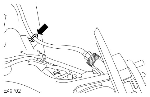 - Secure the LH parking brake cable to the lower arm.