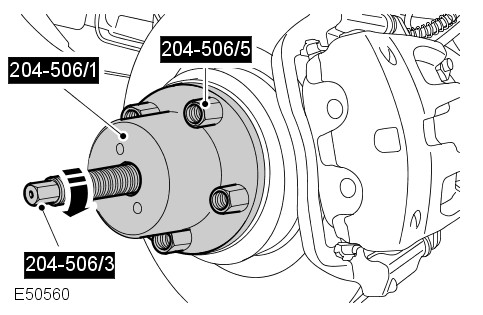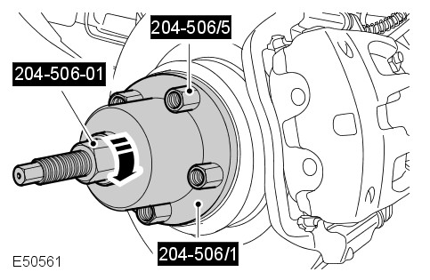 Using the special tools, release the LH halfshaft from the wheel hub.