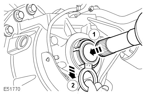 - With assistance, install the LH halfshaft. Install the snap ring. Open the halfshaft oil seal protector. Make sure the snap ring is fully engaged and retains the halfshaft.