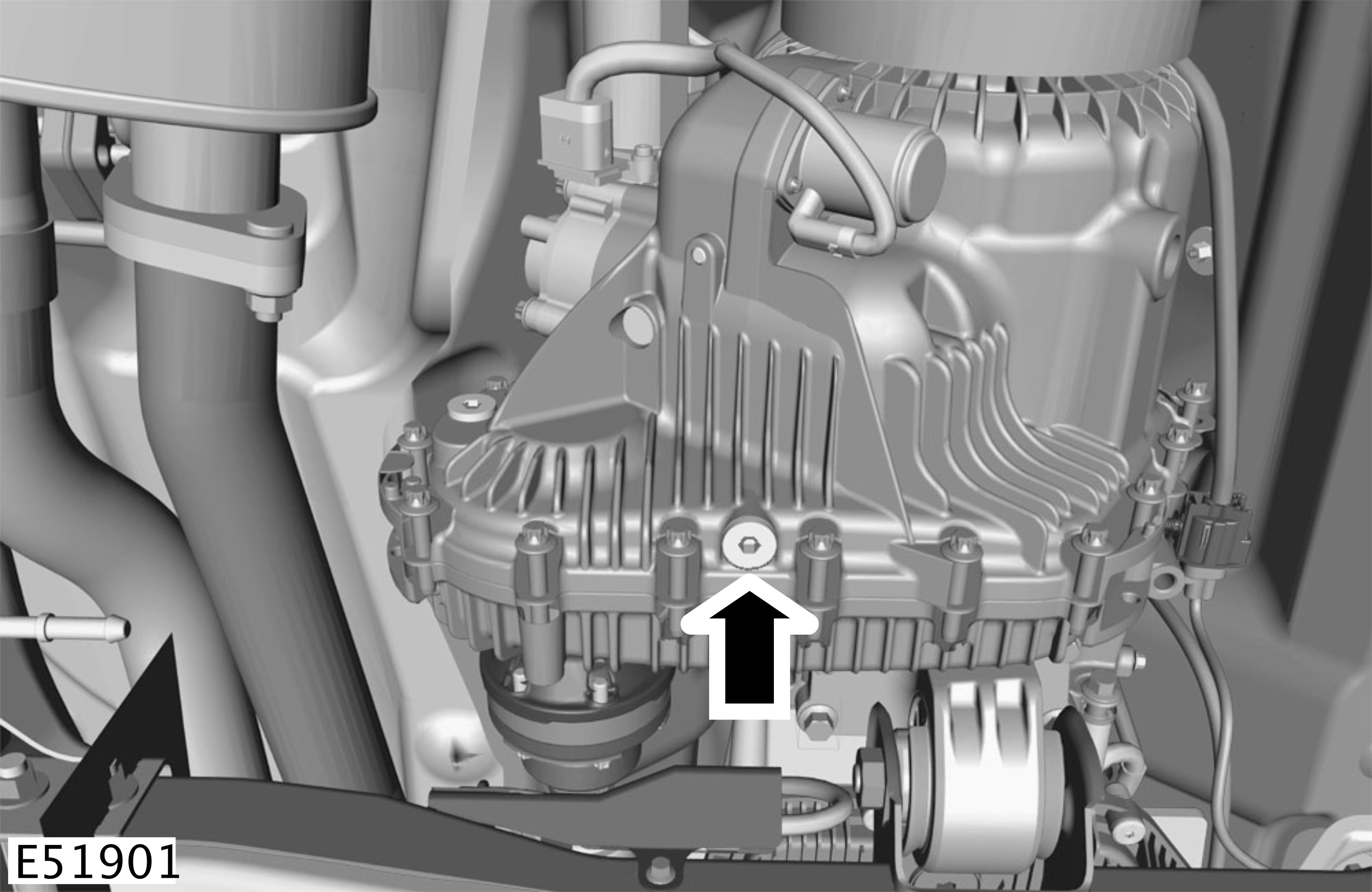 - Clean the component mating faces. Install the fluid filler/level plug. Install a new sealing washer.