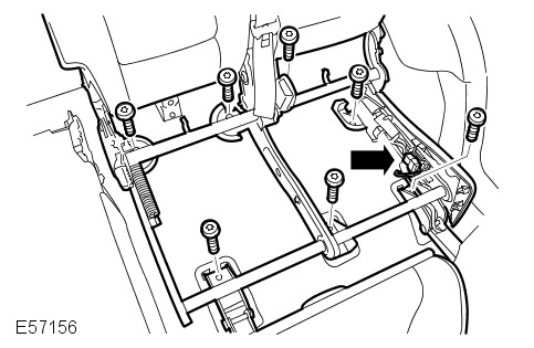 - With assistance, install the rear seat assembly. Position the locating pegs. Connect and secure the electrical connector. Tighten the Torx bolts.