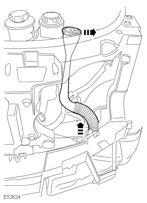 Remove the windshield washer reservoir filler neck. Release the windshield washer reservoir filler neck from the coolant expansion tank. Remove and if necessary, discard the seal.