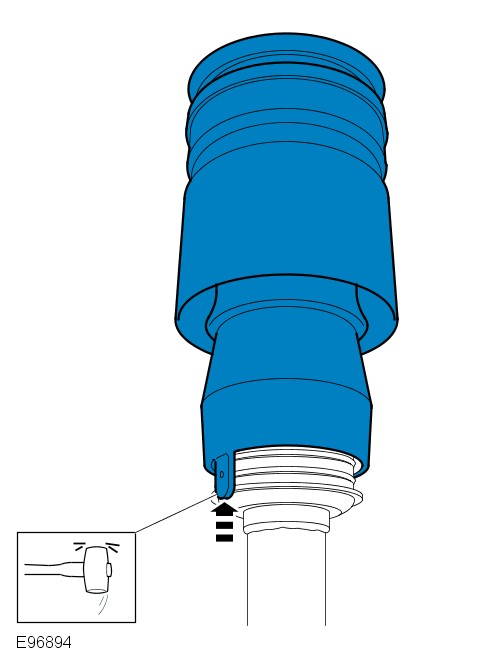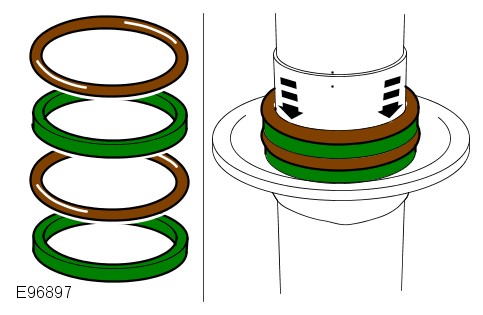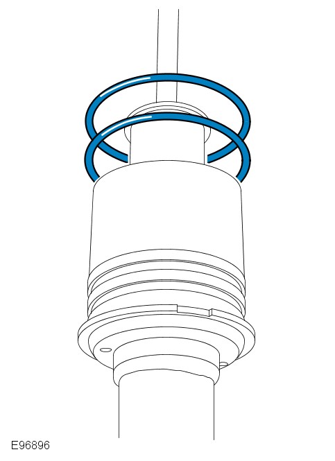 To prevent damage when seating the sleeve support over the large black O-rings, compressed air should be used to inflate the air spring.