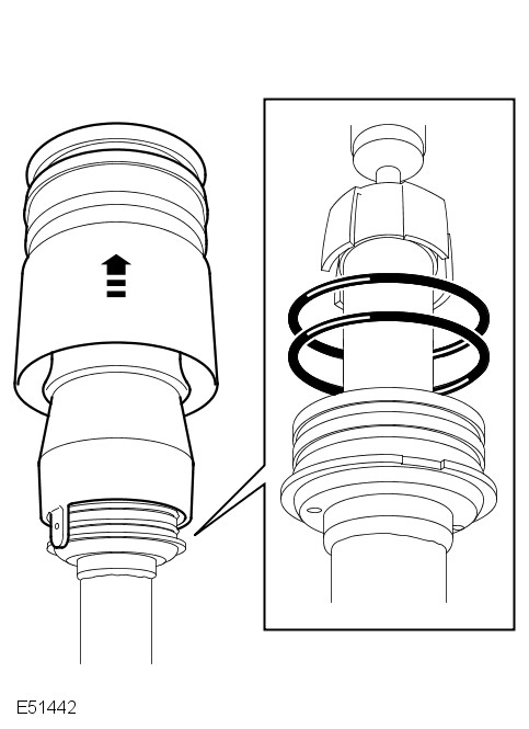 Remove the air spring. Using a soft faced mallet, gently tap the sleeve support upwards to release it from the O-ring seals. Remove and discard the 2 O-ring seals.