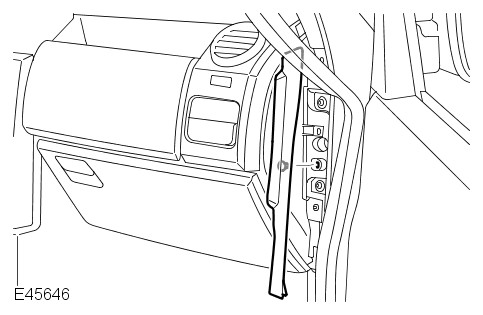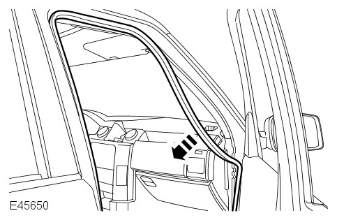 Release the door weatherstrip to access the A-pillar upper trim panel and instrument panel end panel.