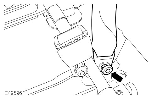 - Install the safety belt lower anchor. Tighten the new nut. Lower the seat cushion.