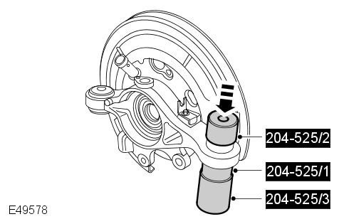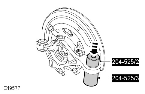 - Remove the wheel knuckle. For additional information, refer to: Wheel Knuckle (204-02 Rear Suspension, Removal and Installation).