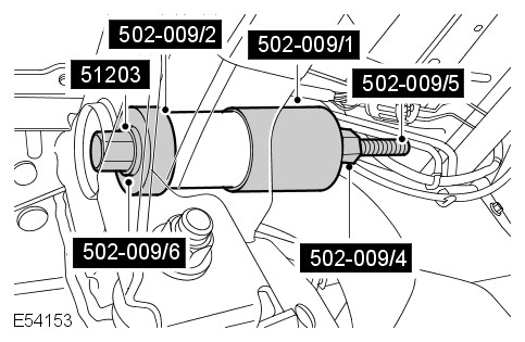 Using the special tools, install the rear axle housing support insulator.