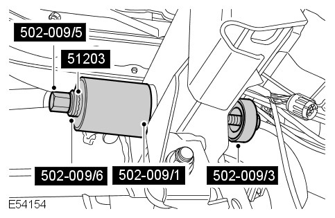 Using the special tools, remove the rear axle housing support insulator.