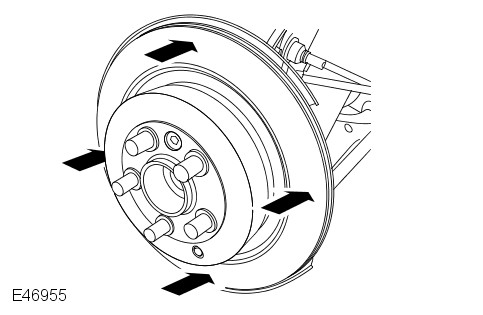 Measure the brake disc thickness at four points around the brake disc.
