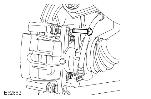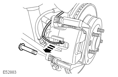 Remove the brake caliper upper bolt.