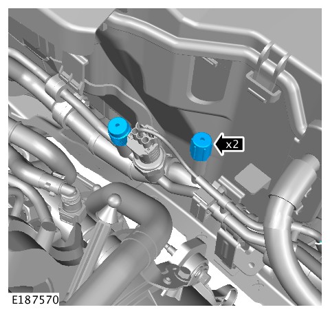 Refrigerant recovery: Remove the dust covers from the high and low pressure connections.