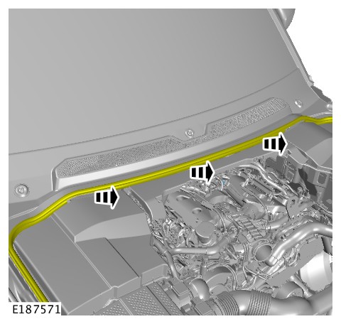 - Remove the windshield wiper arms. For additional information, refer to: Front Wiper Pivot Arm (501-16 Wipers and Washers, Removal and Installation).