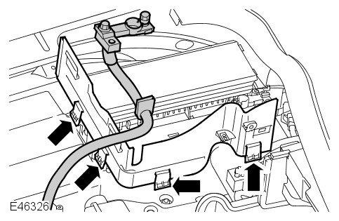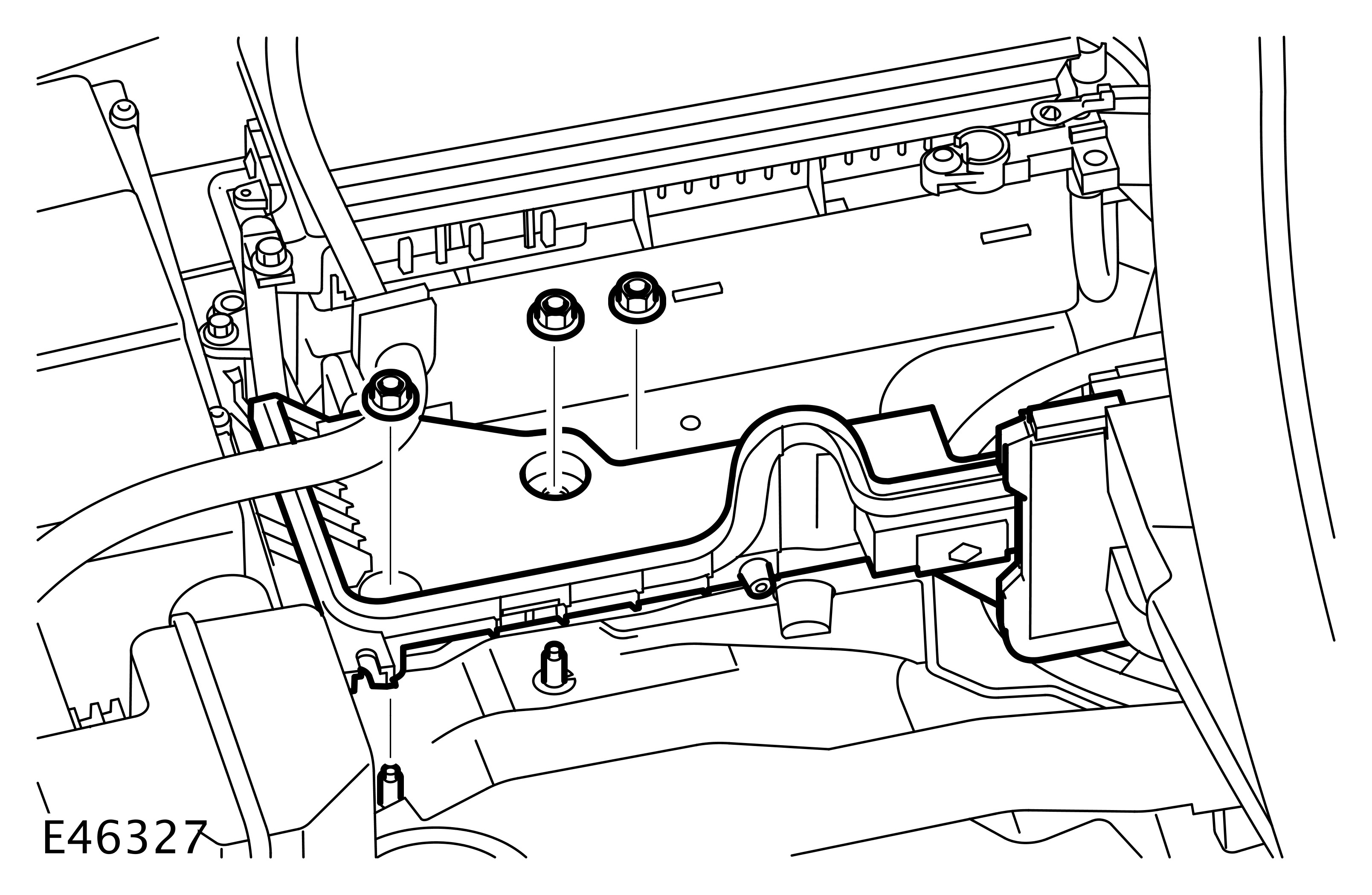 - Remove the battery. For additional information, refer to: Battery (414-01 Battery, Mounting and Cables, Removal and Installation).