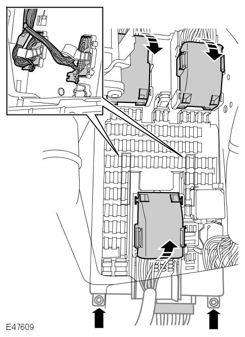 - Remove the glove compartment. For additional information, refer to: Glove Compartment (501-12 Instrument Panel and Console, Removal and Installation).