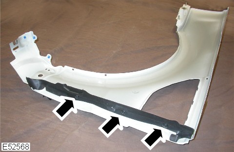 - Remove the fender splash shield. For additional information, refer to: Fender Splash Shield (501-02 Front End Body Panels, Removal and Installation).