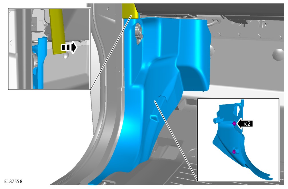 - Remove the front scuff plate trim panel. For additional information, refer to: Scuff Plate Trim Panel (501-05 Interior Trim and Ornamentation, Removal and Installation).