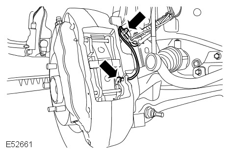 LH side only: Disconnect the brake pad wear indicator sensor.