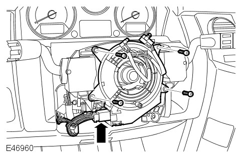 Correct clockspring alignment can be found by viewing a yellow marker through the window situated on the clockspring face. If the marker is not visible, carefully turn the clockspring. If the turning force increases before the marker is visible, reverse the direction to avoid component damage.