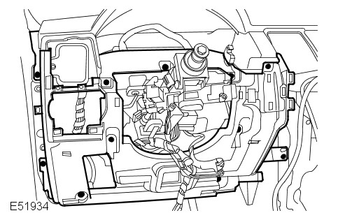 - Remove the instrument panel center reinforcement. For additional information, refer to: Instrument Panel Center Reinforcement (501-12 Instrument Panel and Console, Removal and Installation).