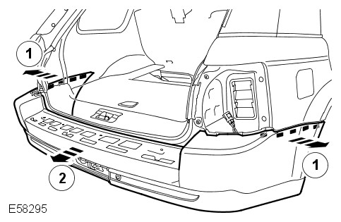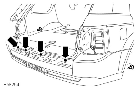 Remove both rear lamp assemblies. For additional information, refer to: Rear Lamp Assembly (417-01 Exterior Lighting, Removal and Installation).