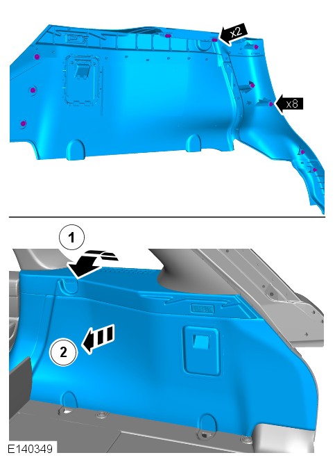 Do not remove clips by pulling on carpeted section of the quarter trim panel.