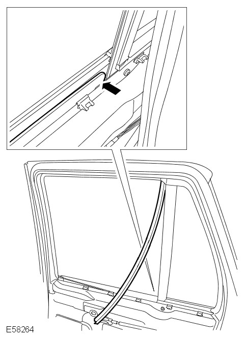 - Install the rear door window motor and regulator assembly. For additional information, refer to: Rear Door Window Regulator and Motor (501-11 Glass, Frames and Mechanisms, Removal and Installation).