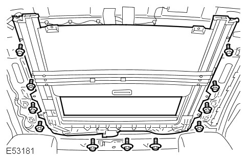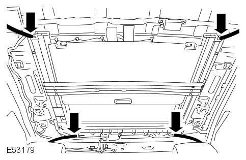 - Remove the roof opening panel glass. For additional information, refer to: Roof Opening Panel Glass (501-17 Roof Opening Panel, Removal and Installation).