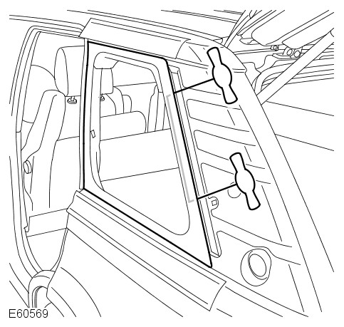 - Remove the rear quarter window moulding. For additional information, refer to: Rear Quarter Window Moulding (501-08 Exterior Trim and Ornamentation, Removal and Installation).
