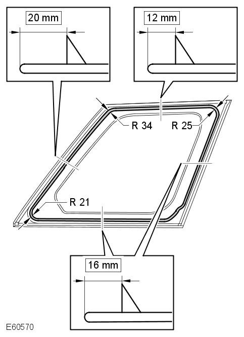 Apply a continuous bead of sealant to the rear quarter window glass as shown.